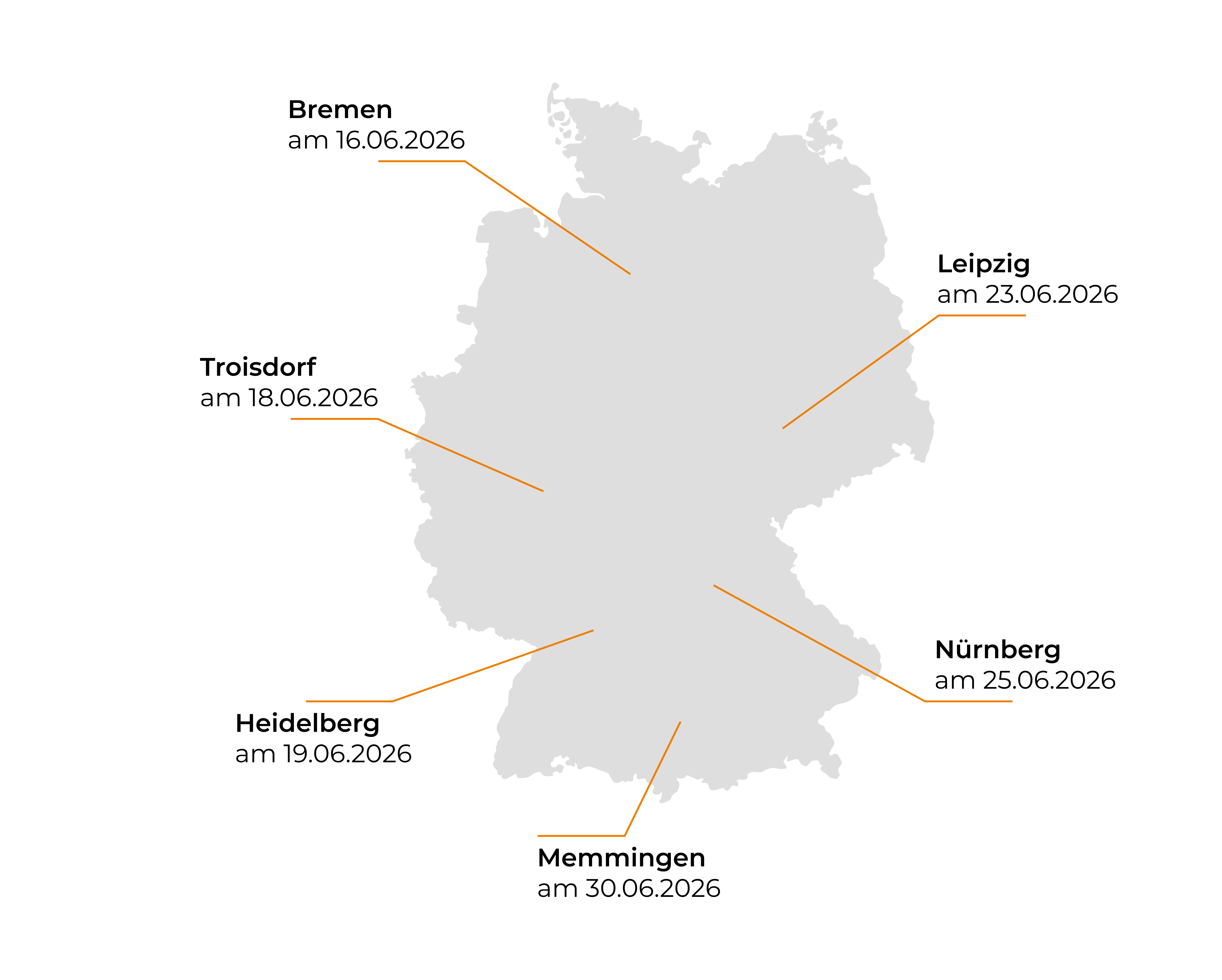 Unsere Roadshow führt uns durch verschiedene Städte in Deutschland – immer dorthin, wo der direkte Austausch am wichtigsten ist.